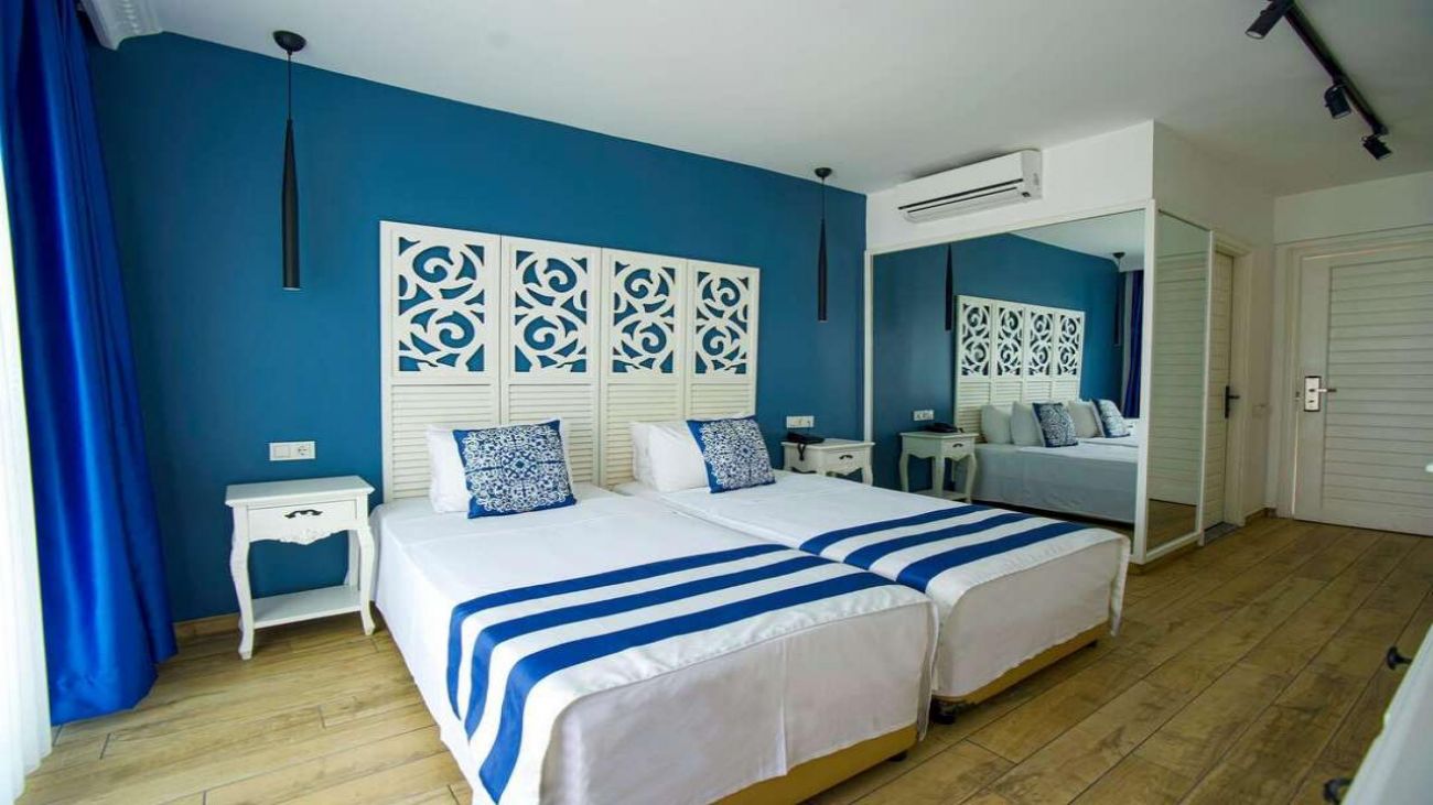 Хотелът се състои от 341 стаи: 217 клубни стаи (от които 81 с гледка градина и 136 гледка море), 58 клубни семейни стаи с гледка градина, 28 делукс семейни стаи и 38 делукс стаи. Всички стаи са оборудвани с: баня с душ, сешоар, климатик, телевизор, телефон, сет за кафе и чай (безплатен), минибар (безплатен, зарежда се веднъж при пристигане с безалкохолни напитки и вода, през останалите дни - веднъж на ден вода и газирана вода), сейф (платено), смяна на спалното бельо – 3 пъти седмично.