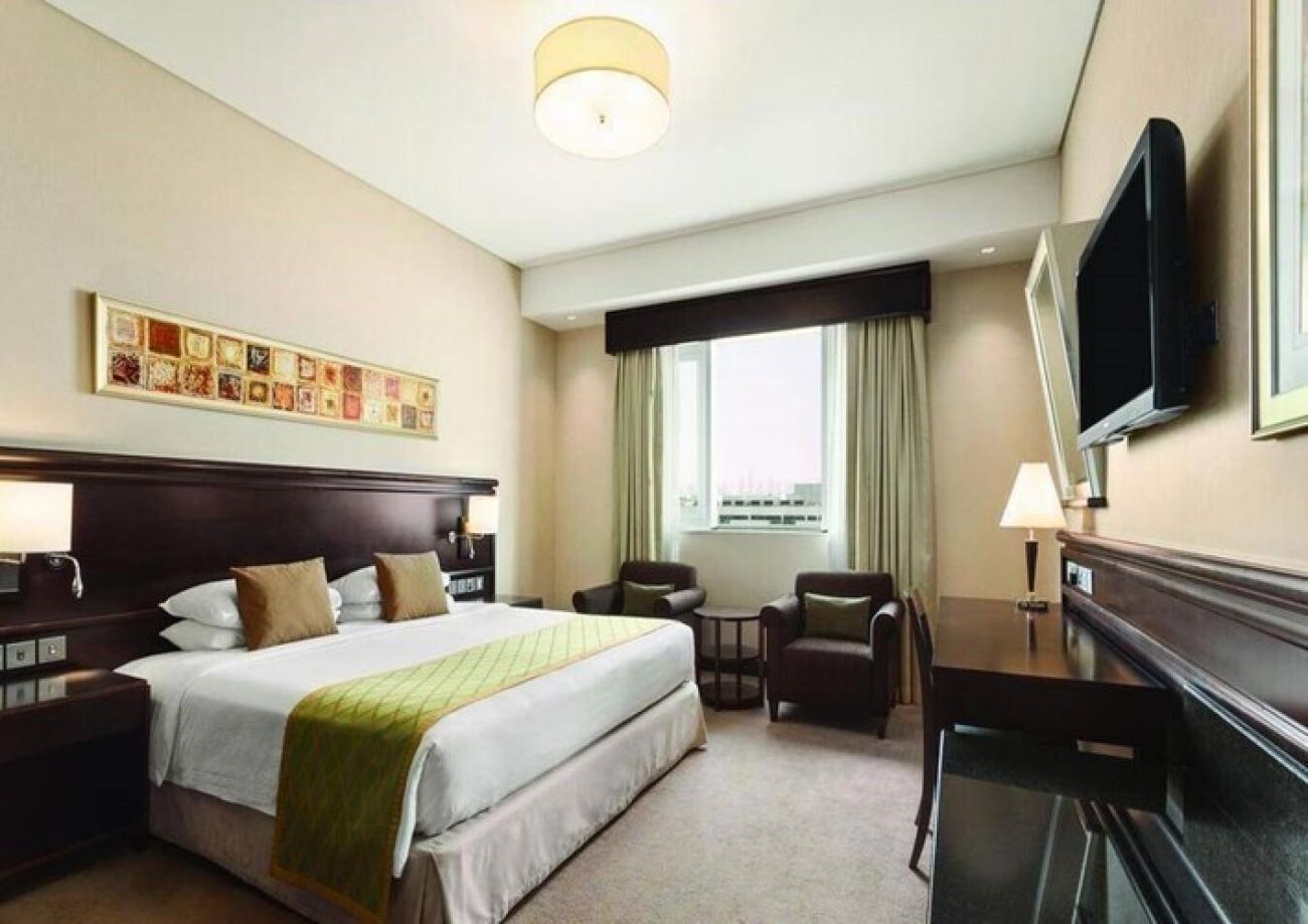 В стаите: В стаята има сейф, който се предоставя безплатно. Стаята се почиства ежедневно, спалното бельо се сменя при поискване. Осигурени са също ютия, халат, чехли и сешоар. Стаята е с мокет, има аксесоари за баня, телевизор, климатик, минибар (срещу допълнително заплащане), телефон, вана и душ. За удобство на гостите има 24-часово обслужване по стаите. Има дъска за гладене и удобства за приготвяне на чай и кафе. В стаята се предлагат безплатна бутилирана вода, както и безплатен Wi-Fi.