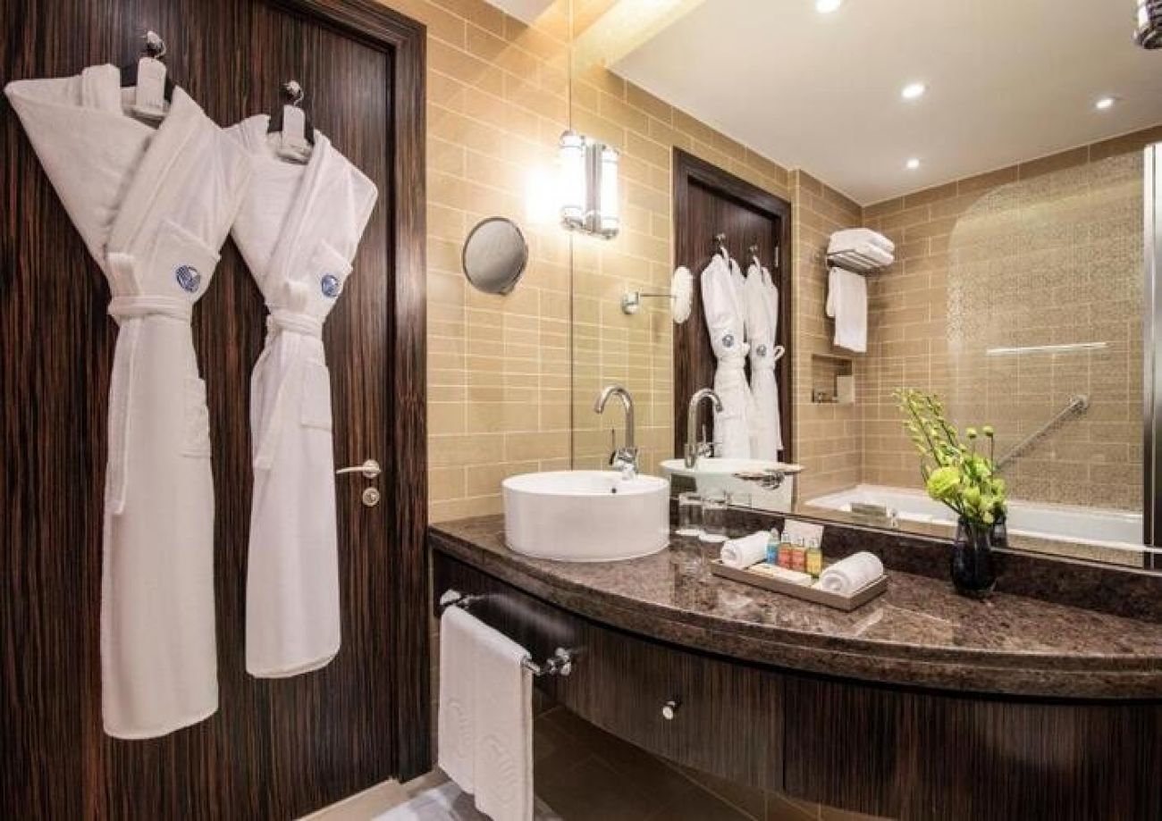 В стаите: Стаята разполага с кафемашина, минибар, баня с вана или душ, тоалетна, сейф, телевизор, телефон, климатик, сешоар, ютия, халати и чехли и тоалетни принадлежности.