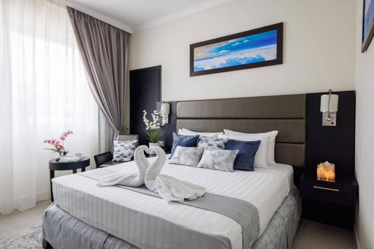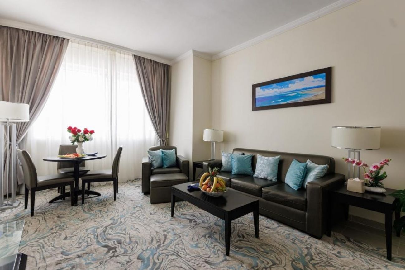 Всички помещения за настаняване в хотел Royal Riviera Doha са климатизирани и обзаведени с модерен декор. Всяка стая и апартамент са с мокет, минибар и самостоятелна баня с безплатни тоалетни принадлежности. Някои предлагат изглед към морето и града.