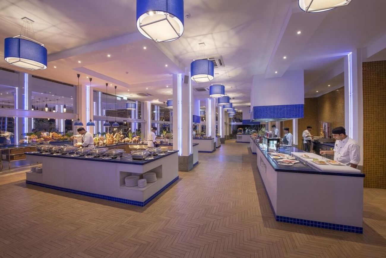 На територията: На териториата на хотела има 4 ресторанта(Азиатска, средиземноморска, японска, италианска, централна и южноамериканска кухня), барове/ бар, бар до басейна, бар на плажа/, семейни стаи, спа център, фитнес, възможности за различни водни спортове,тенис кортове, мини фyтболно игрище и детски клуб.