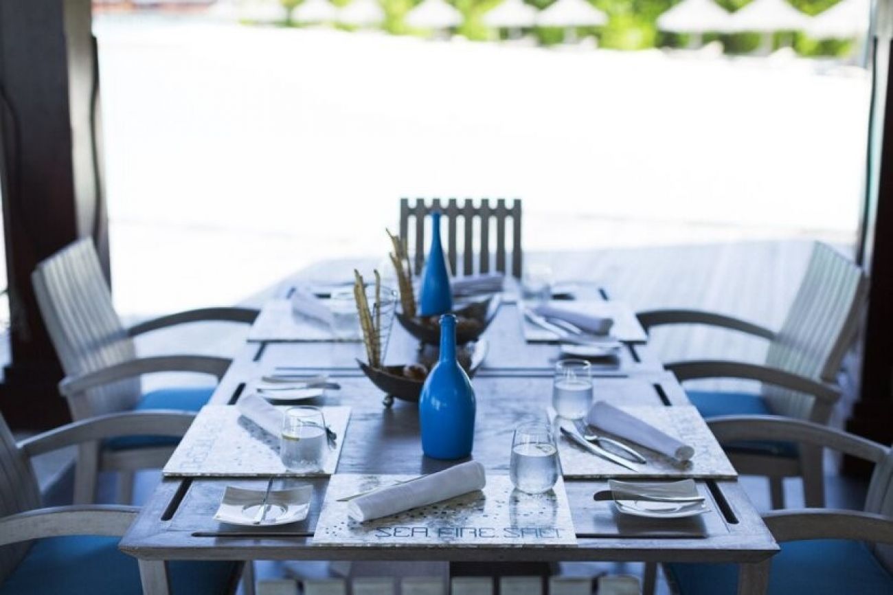 На територията на хотела: Има няколко ресторанта и бара. Основният ресторант, Cafe Fushi, предлага международна и малдивска кухня. Грил ресторант Sea.Fire.Salt е специализиран в месни ястия. Има аква бар до басейна. Гостите могат да се насладят на панорамен плувен басейн, достъпен за всички възрасти.