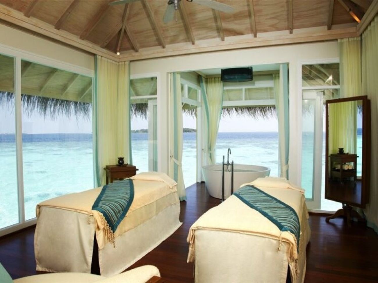 Плаж: Островът е с размери 490 на 279 метра и има собствен пясъчен плаж на 10 метра от хотела. Чадъри, шезлонги и кърпи се предоставят безплатно.