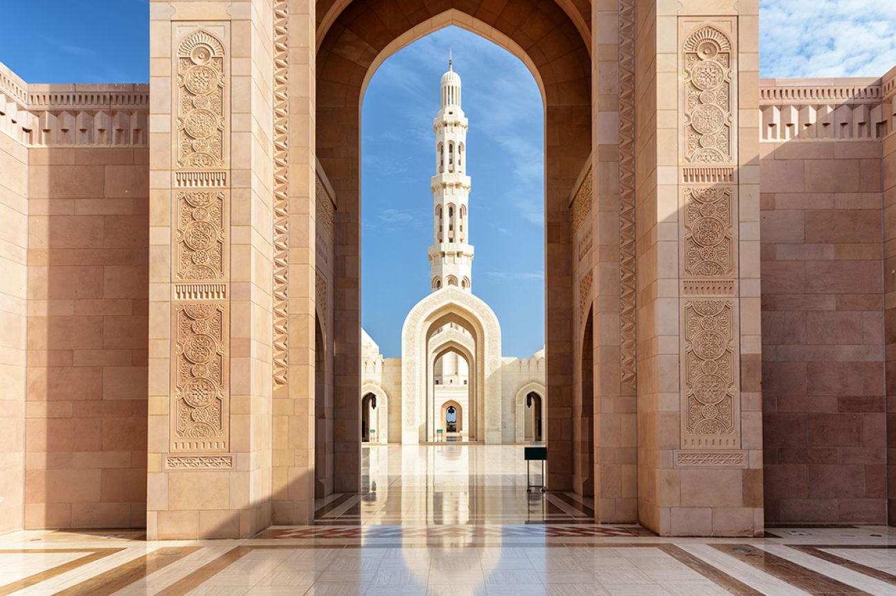 Първото ни посещение днес ще бъде Голямата Джамия на Маскат – храмът издигнал се величествено със своята сложна, но изчистена архитектура. Тази грандиозна джамия е един от символите на Маскат. Посветена е на предишния султан на Оман - Кабус. Има пет минарета, които символизират петте стълба на исляма, а куполът й впечатлява с изящната си изработка с арабски орнаменти. Вътре могат да се съберат до 20 000 поклонници едновременно.