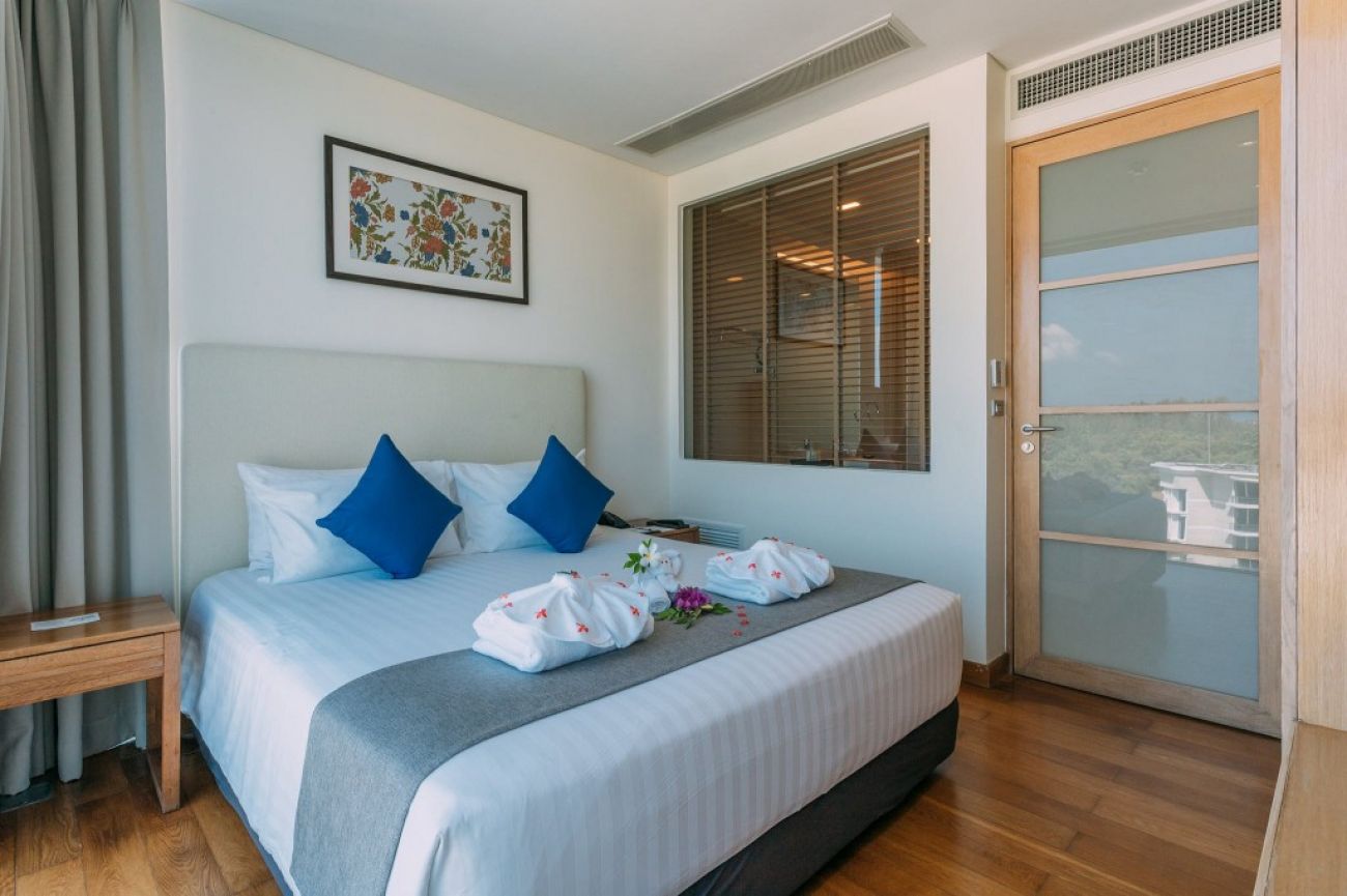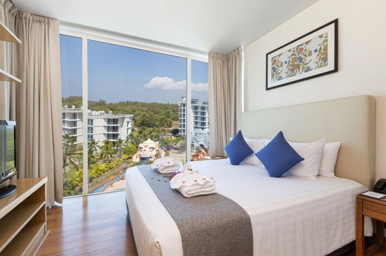 Deluxe King with balcony – 30м2, едно двойно легло и изглед към градината. Просторната двойна стая разполага с климатик, балкон, баня с душ и безплатни тоалетни принадлежности и кърпи, плоскоекранен телевизор с кабелни канали, минибар, сет за приготвяне на кафе и чай, сейф.